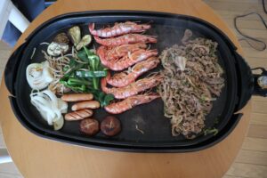 外が無理なら中でやればいい!ということで室内にて涼しくBBQを楽しみました!