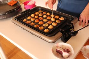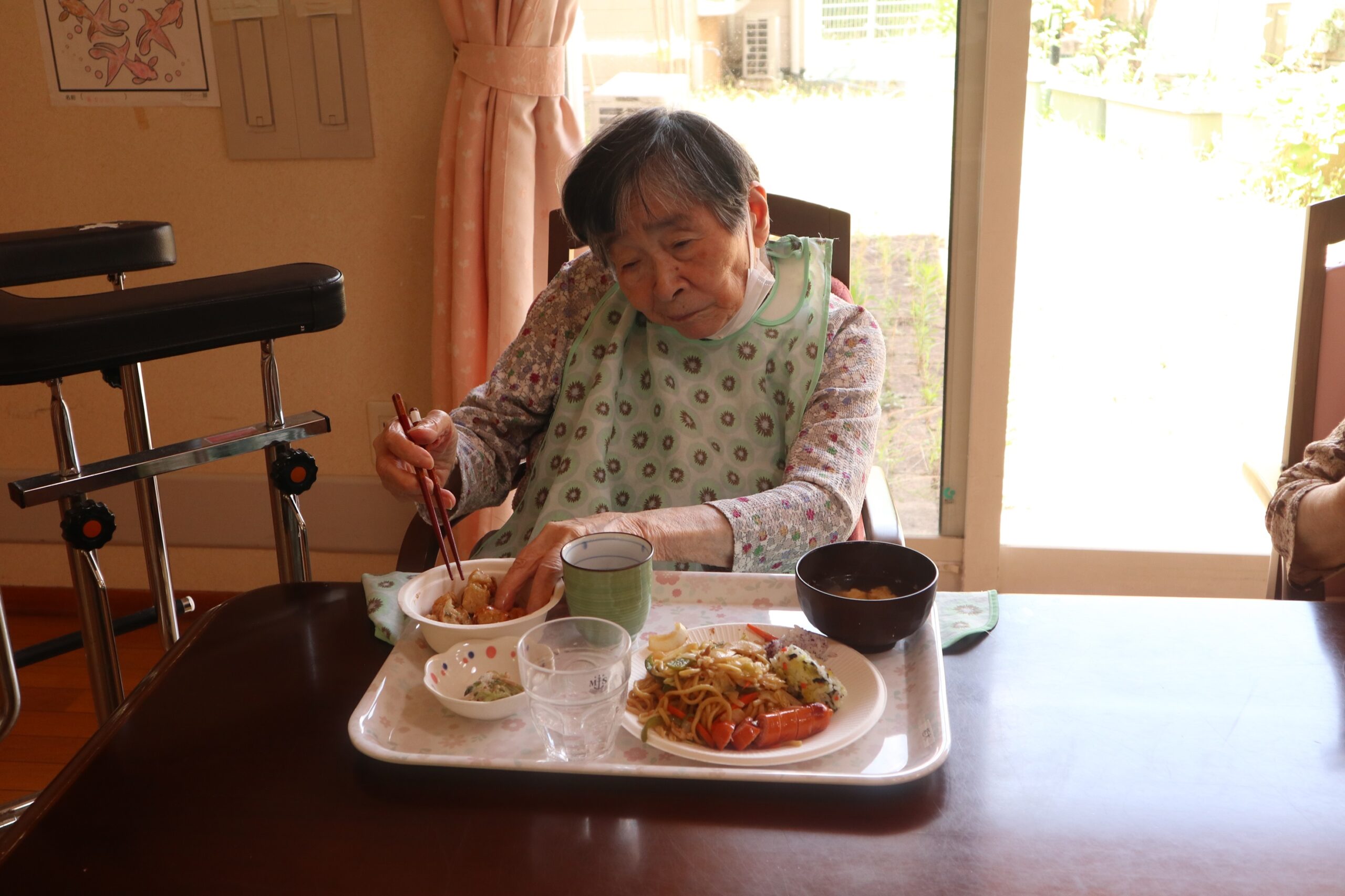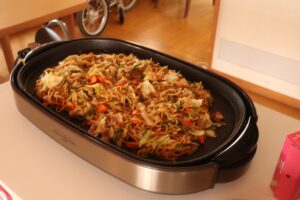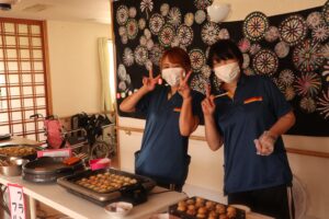 たこ焼きや、焼きそば、フランクフルト…など利用者様にも手伝って頂き豪華なお昼ご飯になりました。