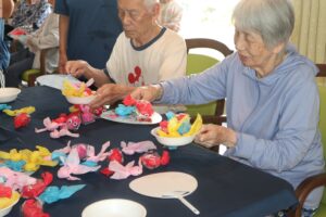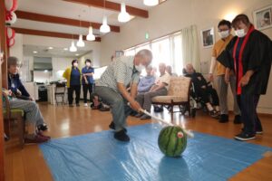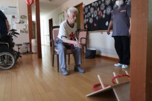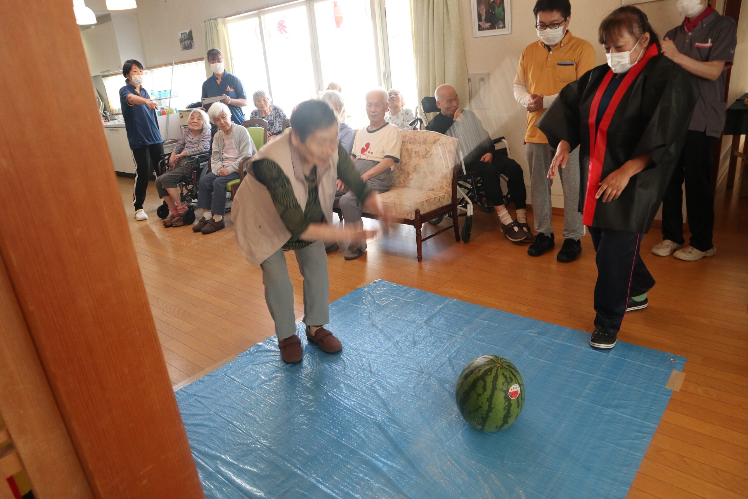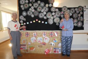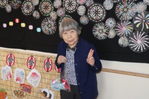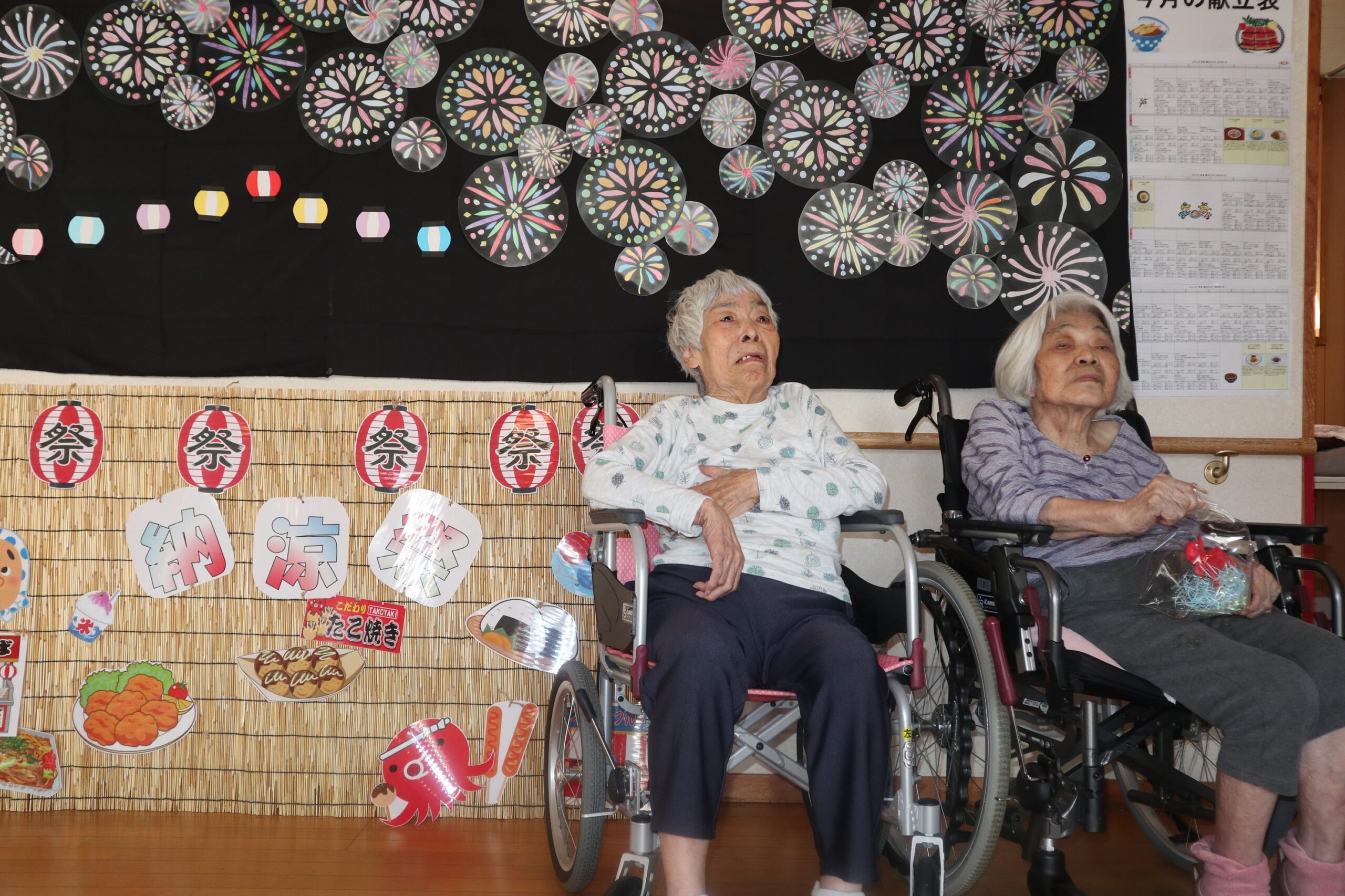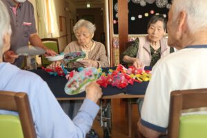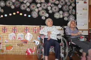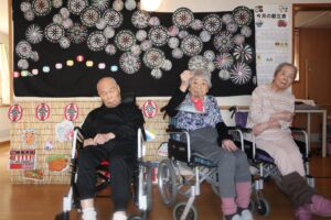 職員の手作りの飾りつけで各ユニットを飾り付けたり提灯や法被など…