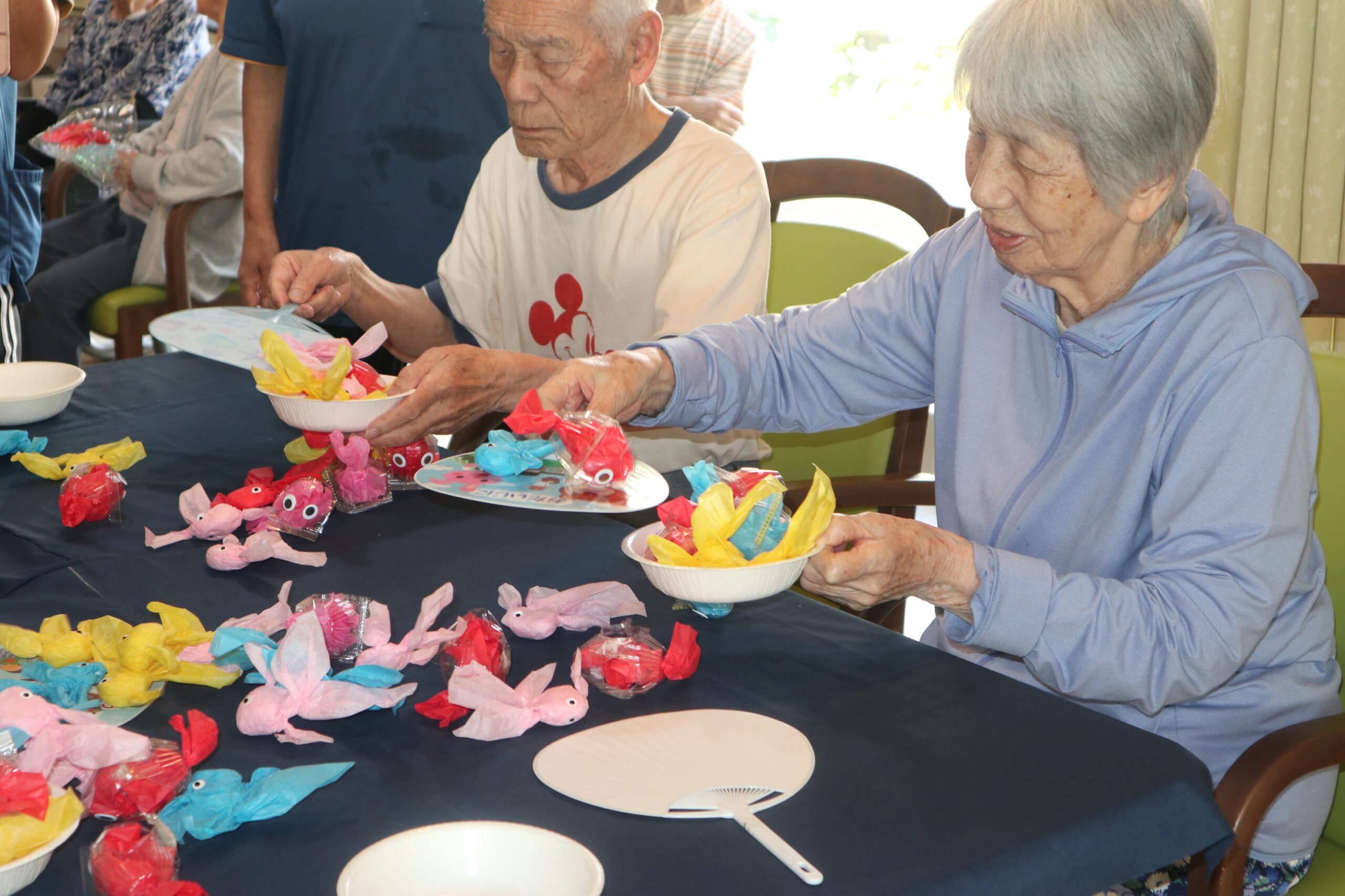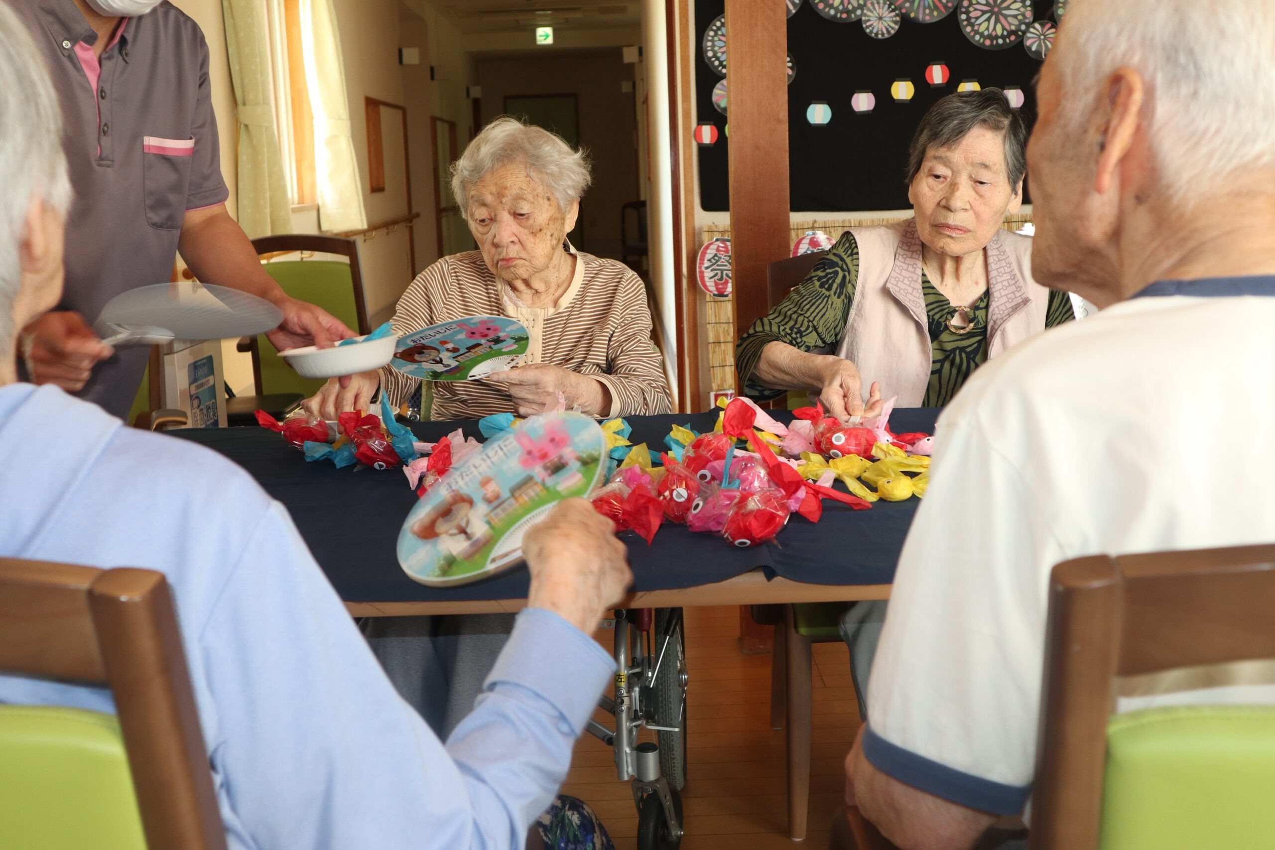 至るところをお祭り風、屋台風にして室内でもお祭り気分を利用者様に感じて頂くために準備しました!