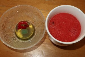 先ほどのスイカ割りで割れたスイカで作った特製スイカジュース