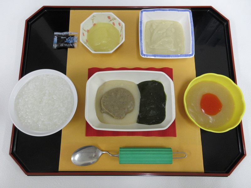 ※食べ物を飲みこむ力が弱い方には、ペースト状に仕上げた嚥下しやすいお食事を提供しています。