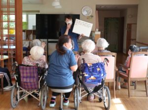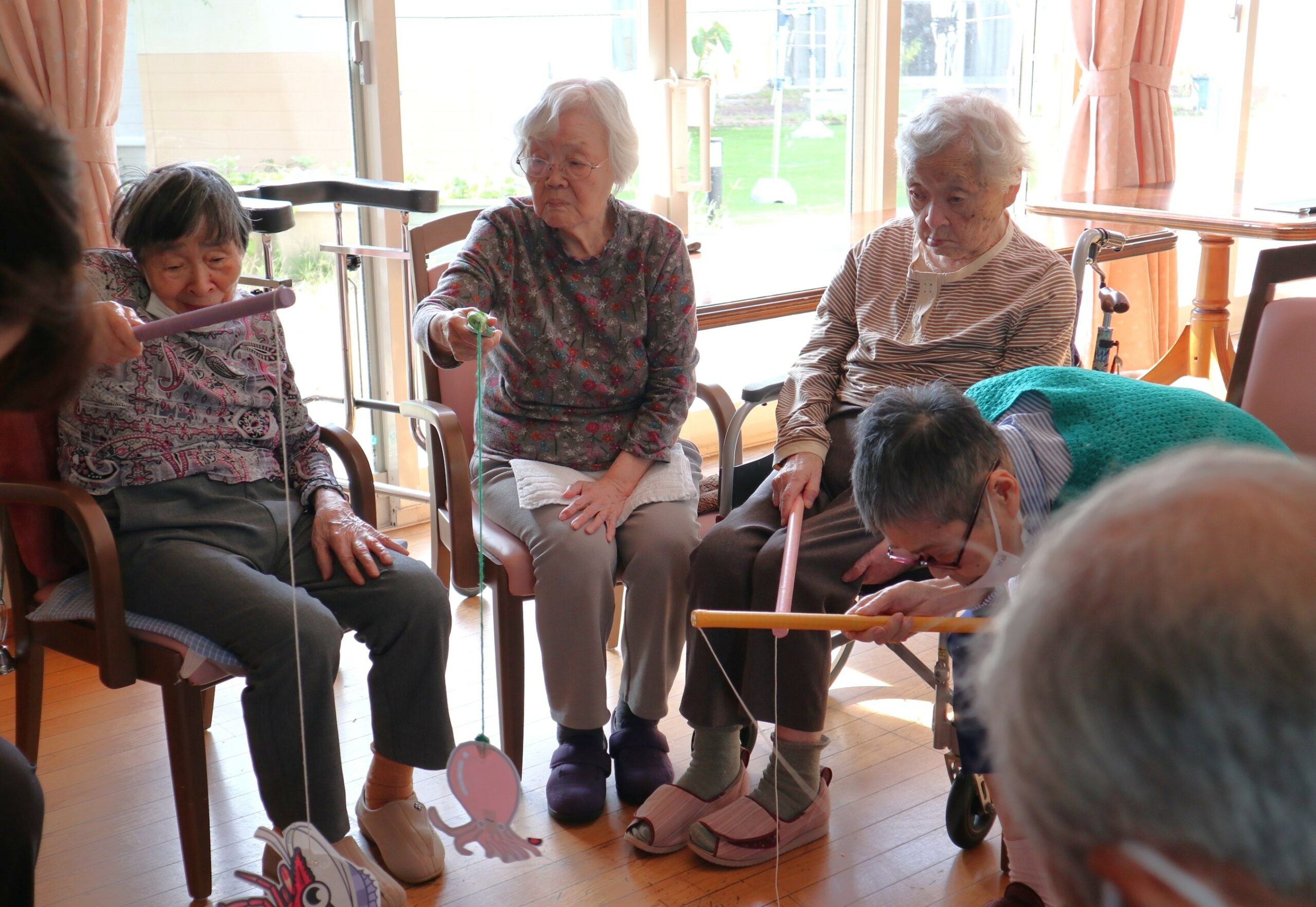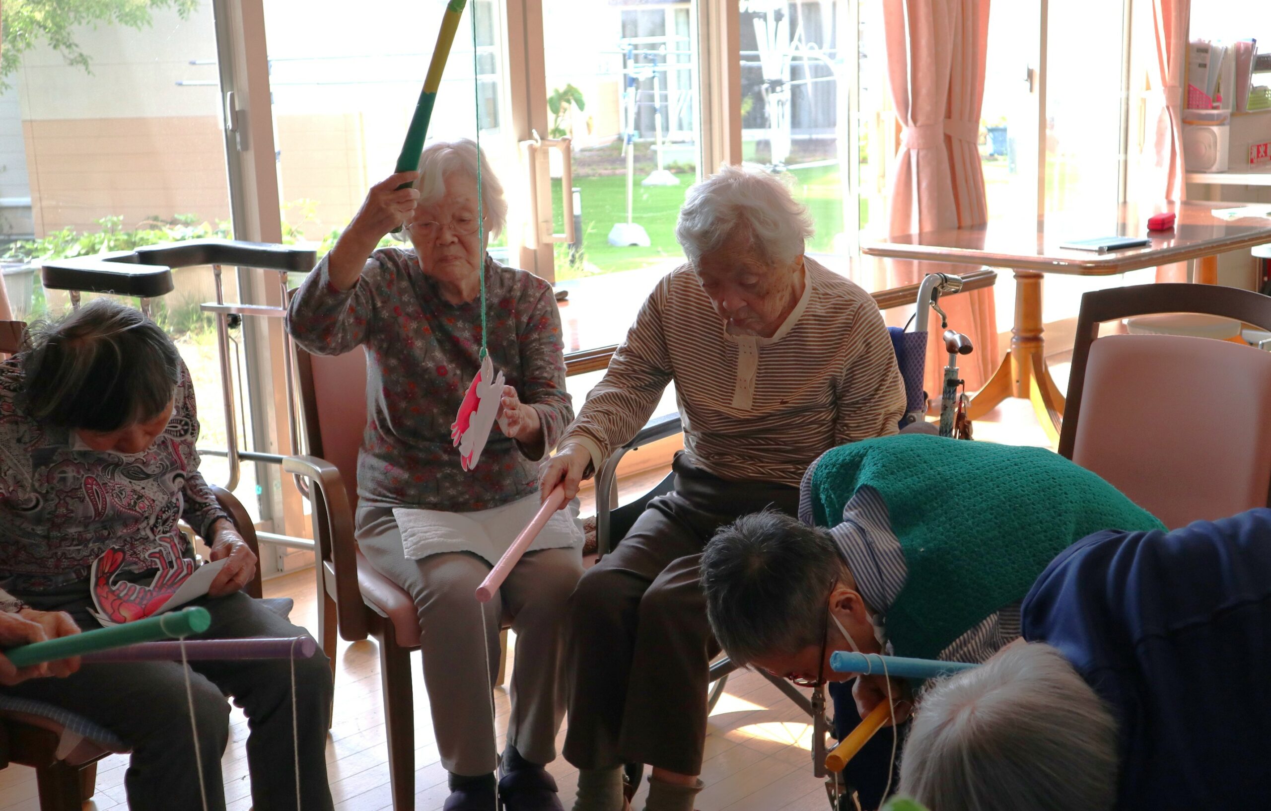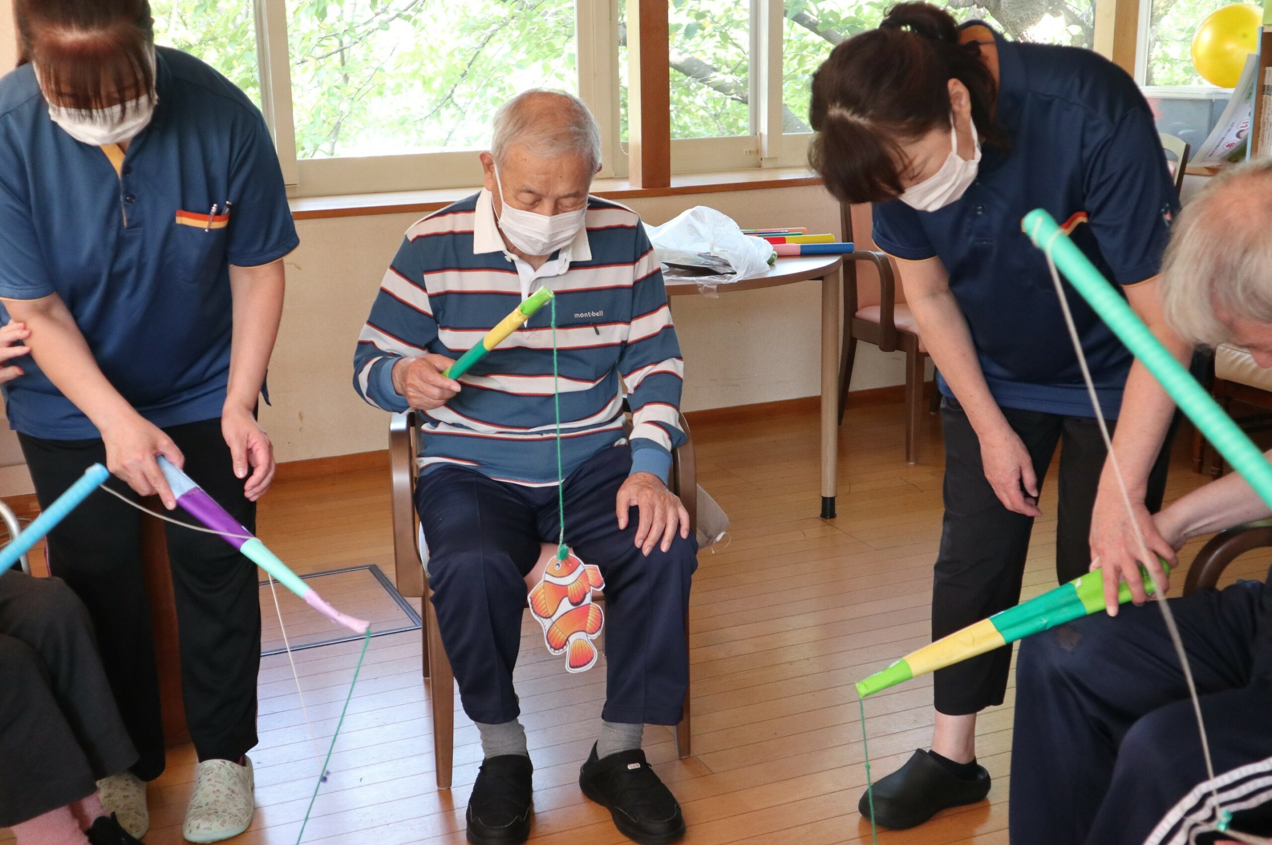 レクリエーションではしりとりと魚釣りゲームを開催!