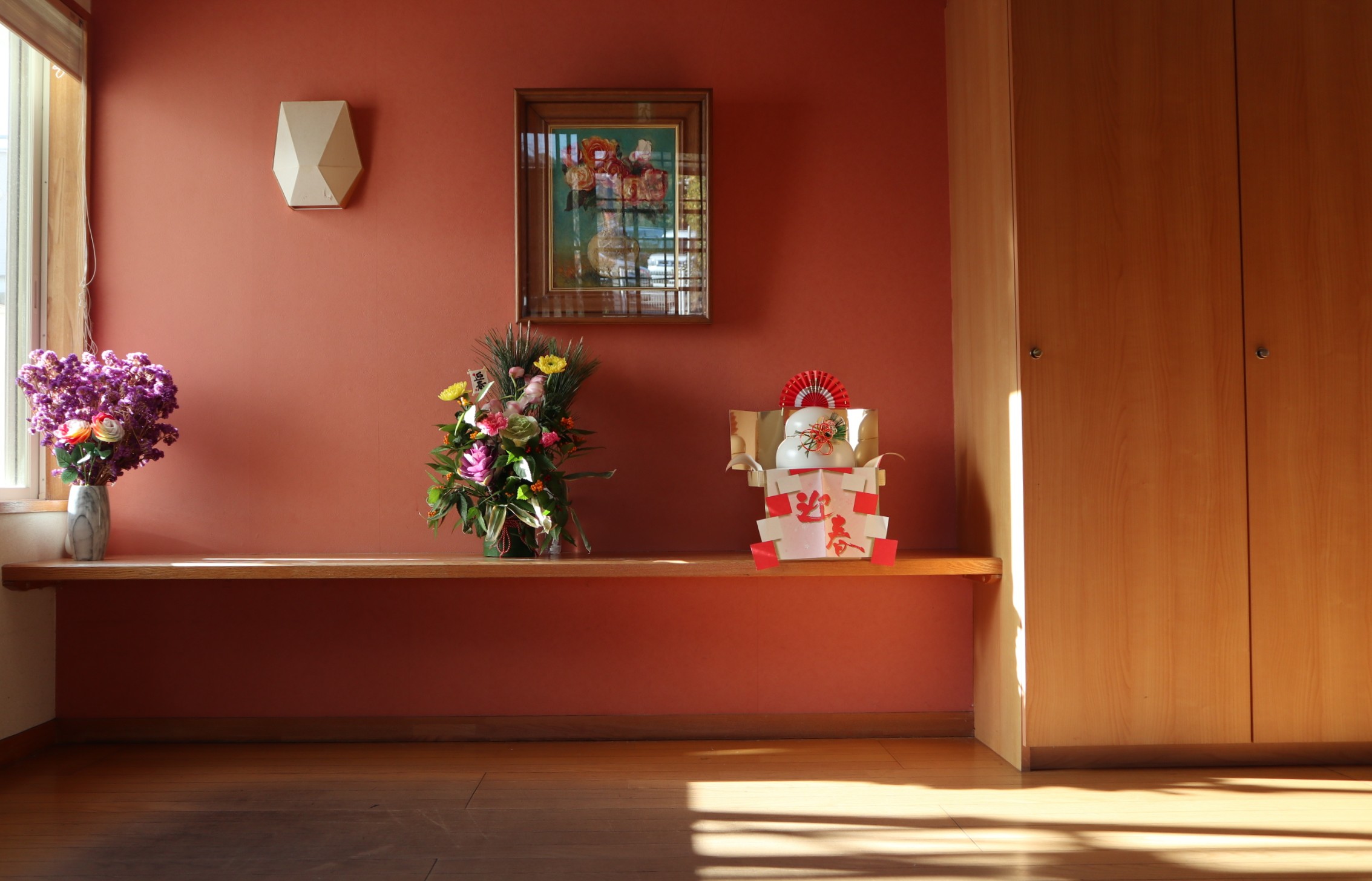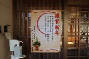 現在施設の玄関には正月飾り、新年のご挨拶を掲示しております。
