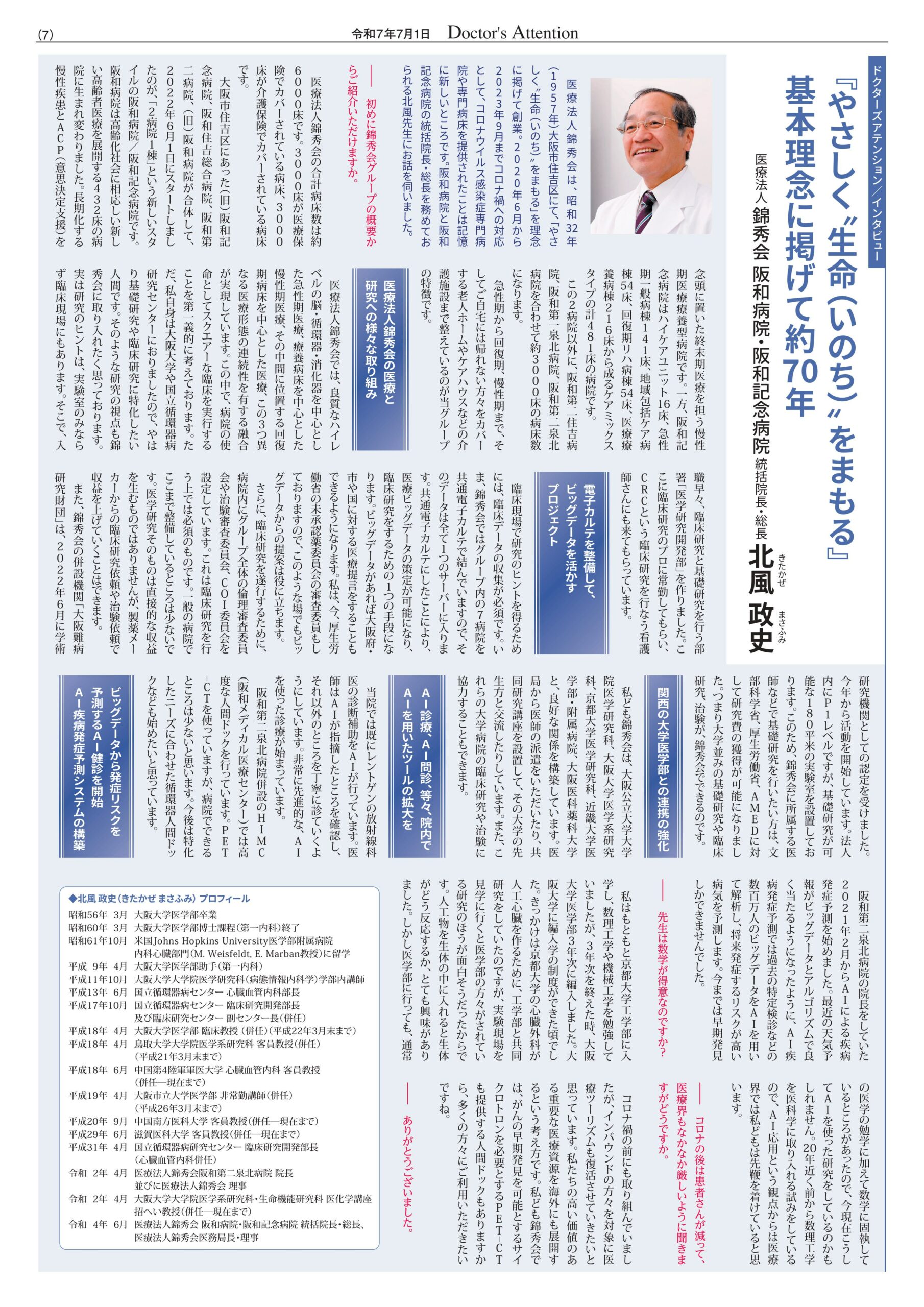 医療機関向けの月刊医療情報誌『ドクターズアテンション』7月号に北風先生のインタビューの記事が掲載されました。 錦秀会の取り組みや最近の話題、大学との連携についてお話されています。 よければご一読ください。 ドクターズアテンション【7月号】