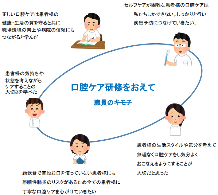 神出病院では多職種が連携して口腔ケアにとりくみ患者様の健康管理をサポートしています。