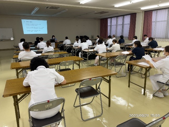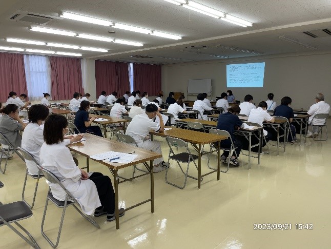 研修アンケートには、「患者様から相談を受けたり、話を聴いたりすることが多いので、関わりの中での距離の取り方の大切さを再度認識することができました。」「小さなことでも、自分ひとりで解決しようとせず、すぐに相談しようと思いました。」「知らないことがたくさんありましたが、とてもわかりやすく、たいへん勉強になりました。」など、それぞれが新しい知識を得たり、考えを深めたりすることができました。
