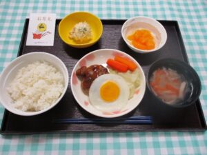 目玉焼きが目を引くハンバーグは、患者さまからも好評で