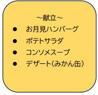 十五夜は旧暦の8月15日の事で、一年のうちで最も空が澄み渡るこの時期に満月がとてもきれいに見えるため、月を眺める行事となっています。今年は9月10日(土)が十五夜に当たるため、この日の昼食にお月見の行事食を提供しました。