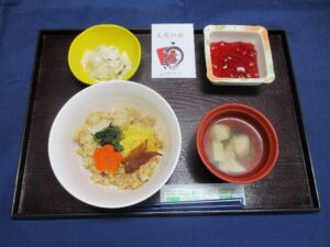 以前より、献立表を見て「あなご丼が楽しみ。早く食べたい!」とおっしゃっていた患者様は「ようやく食べられた。おいしい。」と笑顔で話されていました。