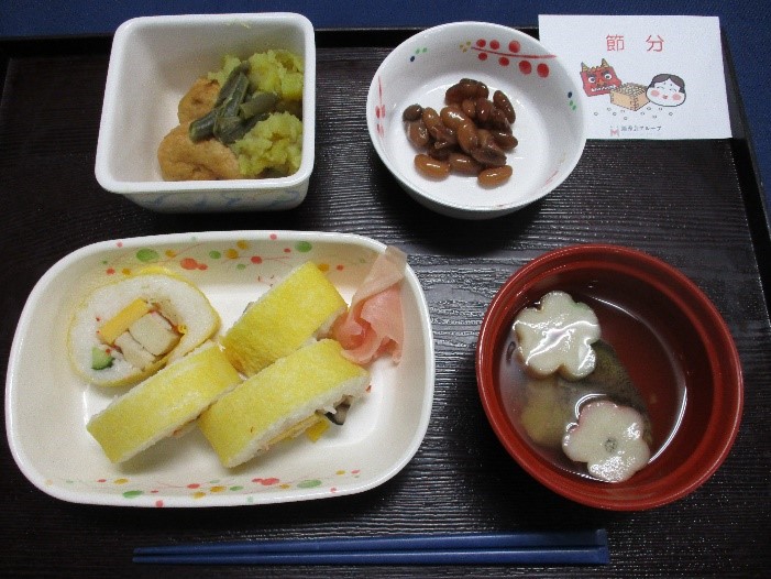 節分が楽しみと話されていた患者様は、「彩りがきれいで、おいしかった。」と笑顔でお話ししてくださいました。