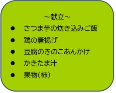 今回の行事食は、さつま芋、きのこ、柿といった秋の食材を使用することで、患者さまに秋を感じていただきたいと考え提供いたしました。