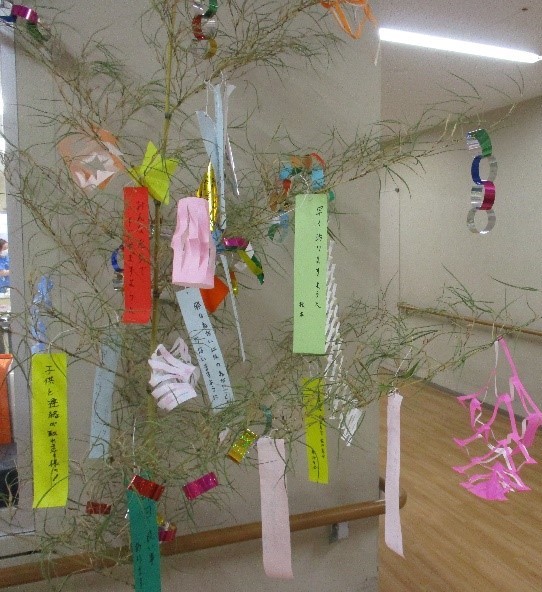 また、各病棟にはレク委員会のメンバーを中心に笹や笹飾りが用意され、患者様は短冊に思い思いの願いをしたためておられました。